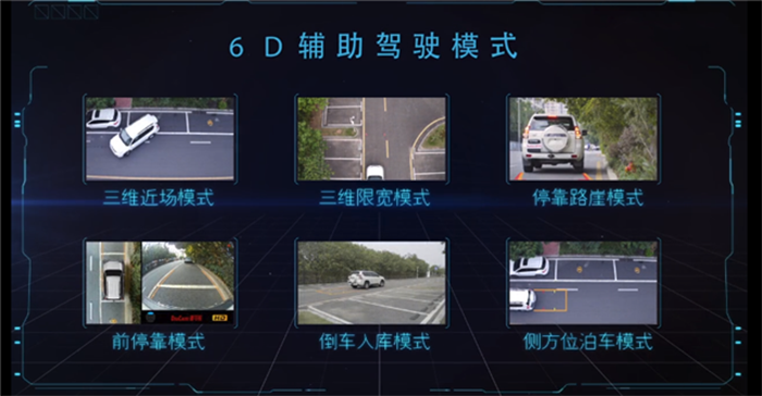 ◆6D輔助駕駛模式。道可視在2018年新增的6D輔助駕駛模式,包含三維近場模式、三維限寬模式、??柯费履J健⑶巴?磕J?、倒車入庫模式、側(cè)方位泊車模式,徹底屏棄掉市場上的其他3D模式,用簡單方便實用的功能,輔助駕駛者順利通過行車障礙、過限寬、極限??柯费碌榷喾N復(fù)雜多變的行車環(huán)境及道路。