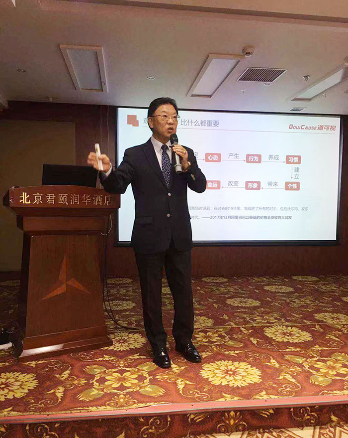 會議伊始,道可視代理商王總率先上臺致辭,王總對于現(xiàn)場來賓的蒞臨表示熱烈的歡迎,王總指出,在如今這樣一個競爭激烈的市場環(huán)境,傳統(tǒng)門店正面臨著嚴峻考驗,門店早已不是單打獨斗,不僅僅只是單純的賣貨,還需要具備一定的核心的競爭力和周到的服務(wù)。