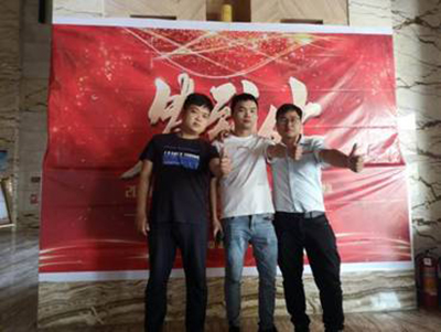 ▲道可視譚祥福經理(右一)、金華經典吳總(中)和來賓合影(左一)