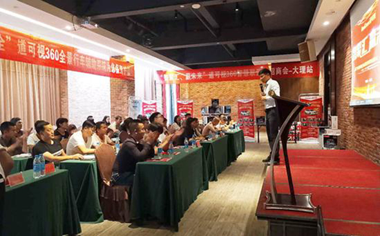 隨后,道可視代理商天歌公司唐總上臺(tái)發(fā)言,他介紹了當(dāng)前360°全景的市場(chǎng)發(fā)展情況,表示隨著道可視智慧聯(lián)盟店的開展,對(duì)于終端門店而言,具備非常大的優(yōu)勢(shì),相信在強(qiáng)大政策和優(yōu)質(zhì)的產(chǎn)品支持下,2019年云南的360°全景市場(chǎng)將迎來大爆發(fā)。