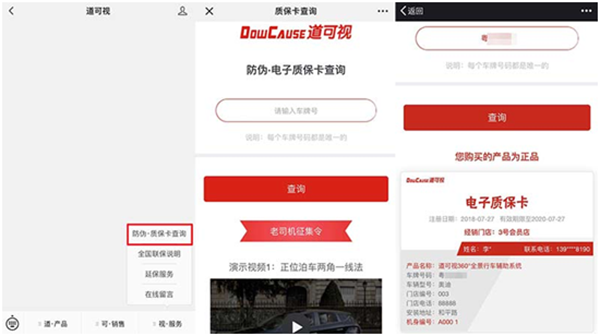 汲取在產(chǎn)品銷售與售后服務上的經(jīng)驗積累,道可視在售后服務上不僅擁有一套標準化的操作流程,還推出“電子質(zhì)?!と珖?lián)?!钡氖酆笳摺C總€購買過道可視產(chǎn)品的消費者,都會獲得一張道可視“電子質(zhì)保卡”,這張電子質(zhì)保卡是道可視產(chǎn)品的真?zhèn)尾樵儜{證,也是集產(chǎn)品信息、門店信息與用戶信息于一體的售后資格憑證。